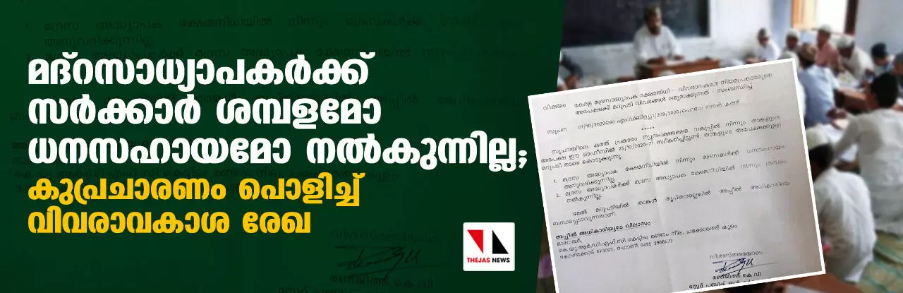 മദ്റസാധ്യാപകര്ക്ക് സര്ക്കാര് ശമ്പളമോ ധനസഹായമോ നല്കുന്നില്ല; കുപ്രചാരണം പൊളിച്ച് വിവരാവകാശ രേഖ