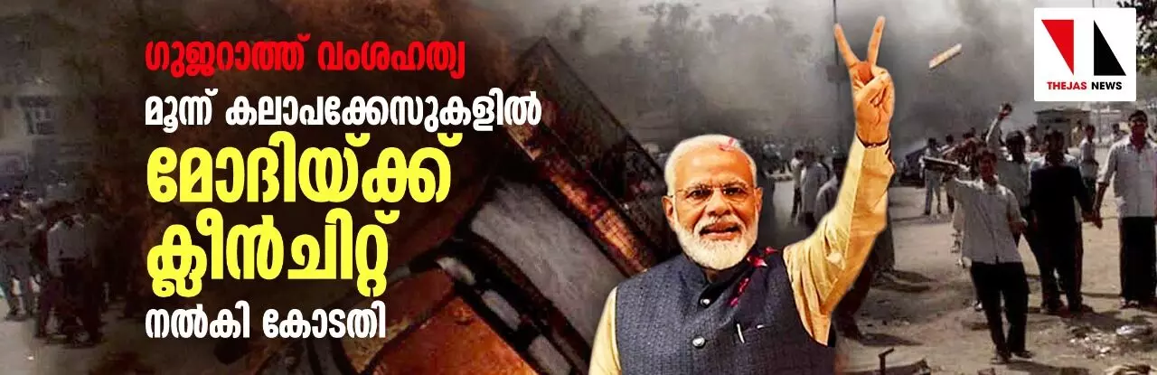 ഗുജറാത്ത് വംശഹത്യ: മൂന്ന് കലാപക്കേസുകളില് മോദിയ്ക്ക് ക്ലീന്ചിറ്റ് നല്കി കോടതി