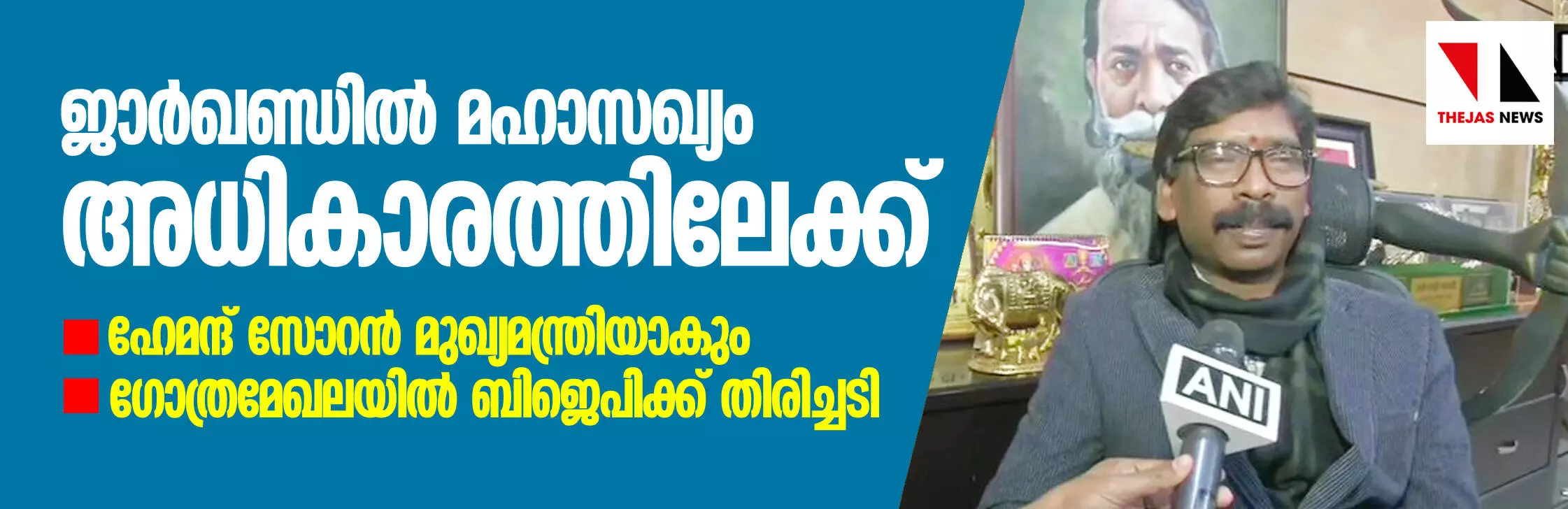 ജാര്ഖണ്ഡില് മഹാസഖ്യം അധികാരത്തിലേക്ക്; ഹേമന്ദ് സോറന് മുഖ്യമന്ത്രിയാകും, ഗോത്രമേഖലയില് ബിജെപിക്ക് തിരിച്ചടി