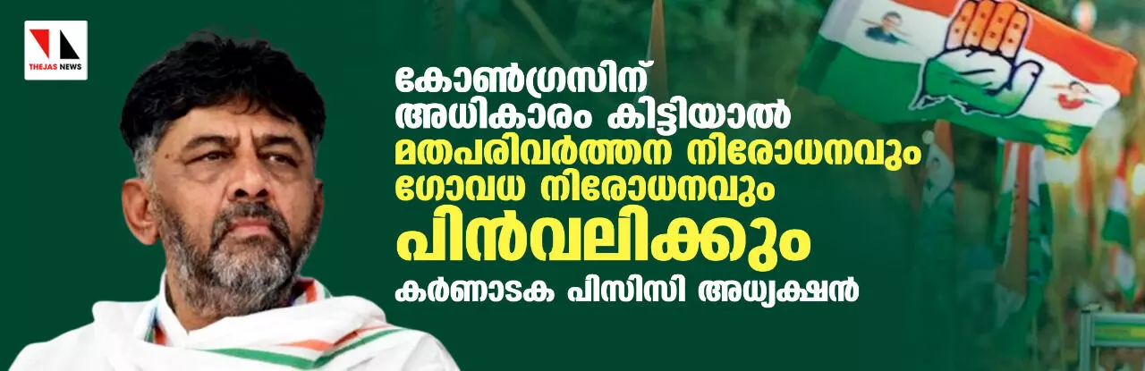 കോണ്ഗ്രസിന് അധികാരം കിട്ടിയാല് മതപരിവര്ത്തന നിരോധനവും ഗോവധ നിരോധനവും പിന്വലിക്കും: കര്ണാടക പിസിസി അധ്യക്ഷന്