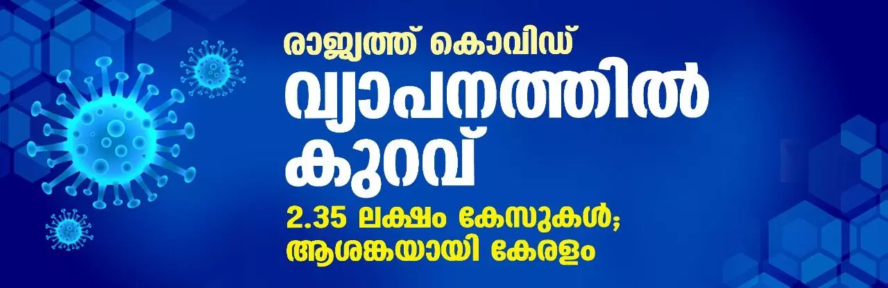 രാജ്യത്ത് കൊവിഡ് വ്യാപനത്തില് കുറവ്; 2.35 ലക്ഷം കേസുകള്; ആശങ്കയായി കേരളം