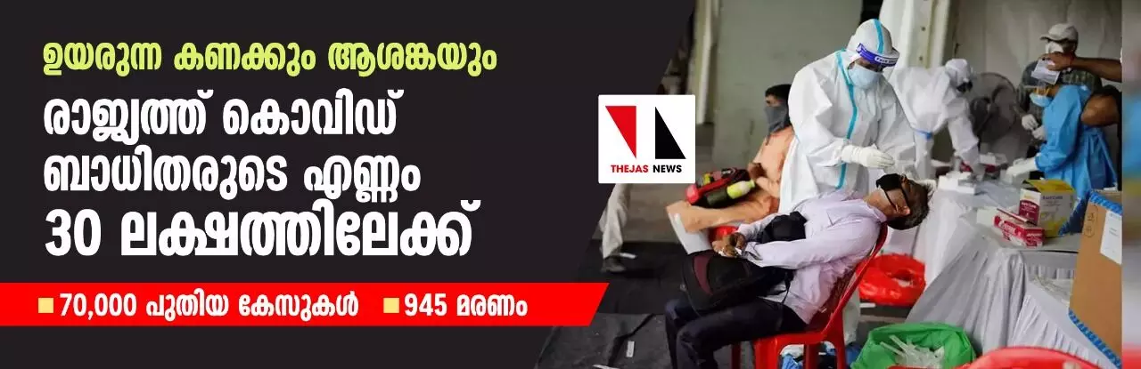 ഉയരുന്ന കണക്കും ആശങ്കയും: രാജ്യത്ത് കൊവിഡ് ബാധിതരുടെ എണ്ണം 30 ലക്ഷത്തിലേക്ക്; 70,000 പുതിയ കേസുകള്; 945 മരണം