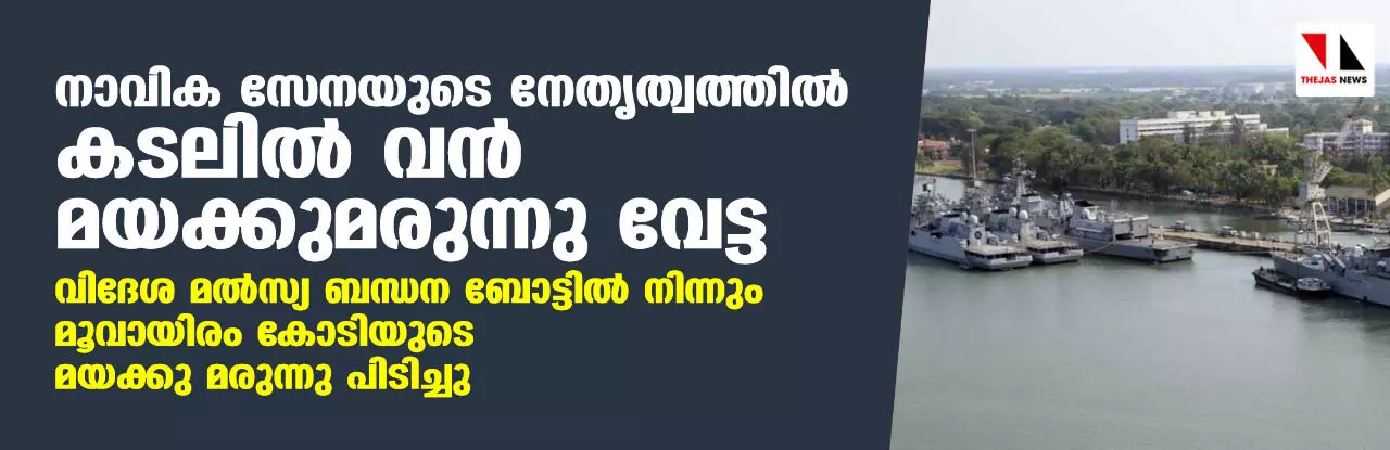 നാവിക സേനയുടെ നേതൃത്വത്തില് കടലില് വന് മയക്കുമരുന്നു വേട്ട; വിദേശ മല്സ്യ ബന്ധന ബോട്ടില് നിന്നും മൂവായിരം കോടിയുടെ മയക്കു മരുന്നു പിടിച്ചു