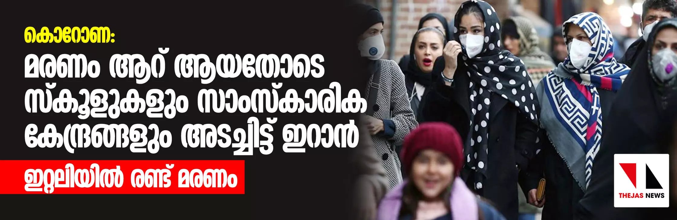 കൊറോണ: മരണം ആറ് ആയതോടെ സ്കൂളുകളും സാംസ്കാരിക കേന്ദ്രങ്ങളും അടച്ചിട്ട് ഇറാന് -ഇറ്റലിയില് രണ്ട് മരണം