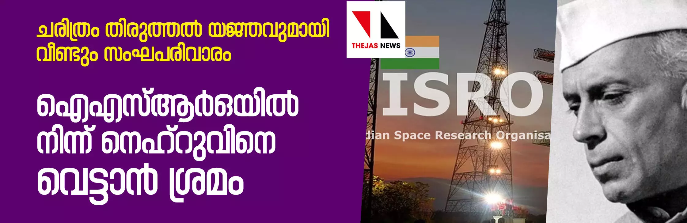 ചരിത്രം തിരുത്തല് യജ്ഞവുമായി വീണ്ടും സംഘപരിവാരം; ഐഎസ്ആര്ഒയില് നിന്ന് നെഹ്റുവിനെ വെട്ടാന് ശ്രമം