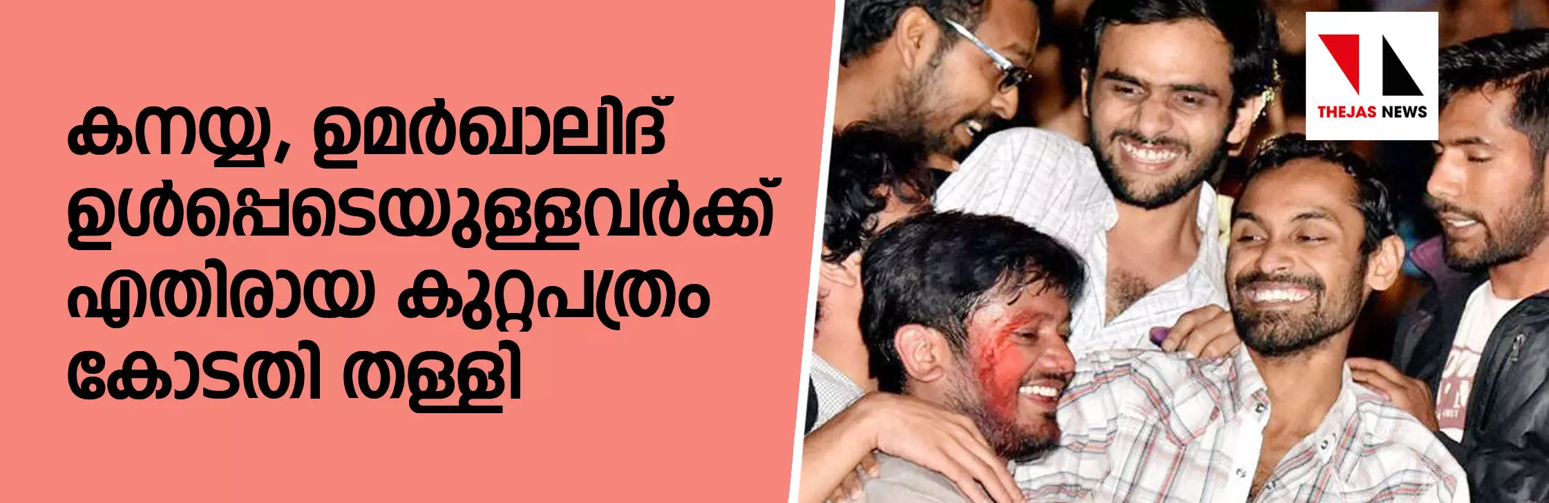 1200ഓളം പേജുകളുള്ള കുറ്റപത്രത്തില് ഉമര് ഖാലിദ്, അനിര്ബന് ഭട്ടാചാര്യ, കശ്മീരിലുള്ള മറ്റ് ഏഴ് വിദ്യാര്ഥികളായ ആഖിബ് ഹുസയ്ന്, മുജീബ് ഹുസയ്ന്, മുനീബ് ഹുസയ്ന്, ഉമര് ഗുല്, റയീസ് റസൂല്, ബാഹിര് ഭട്ട, ബഷറത് എന്നിവരുടെ പേരുകളുമുണ്ടായിരുന്നു. അതേസമയം, അന്നത്തെ പരിപാടിയില് നുഴഞ്ഞുകയറിയ എബിവിപി പ്രവര്ത്തകരാണ് പാക് അനുകൂല മുദ്രാവാക്യം വിളിച്ചതെന്നു അന്നത്തെ എബിവിപി നേതാക്കള് രണ്ടുദിവസം മുമ്പ് വാര്ത്താസമ്മേളനത്തില് വെളിപ്പെടുത്തിയിരുന്നു.