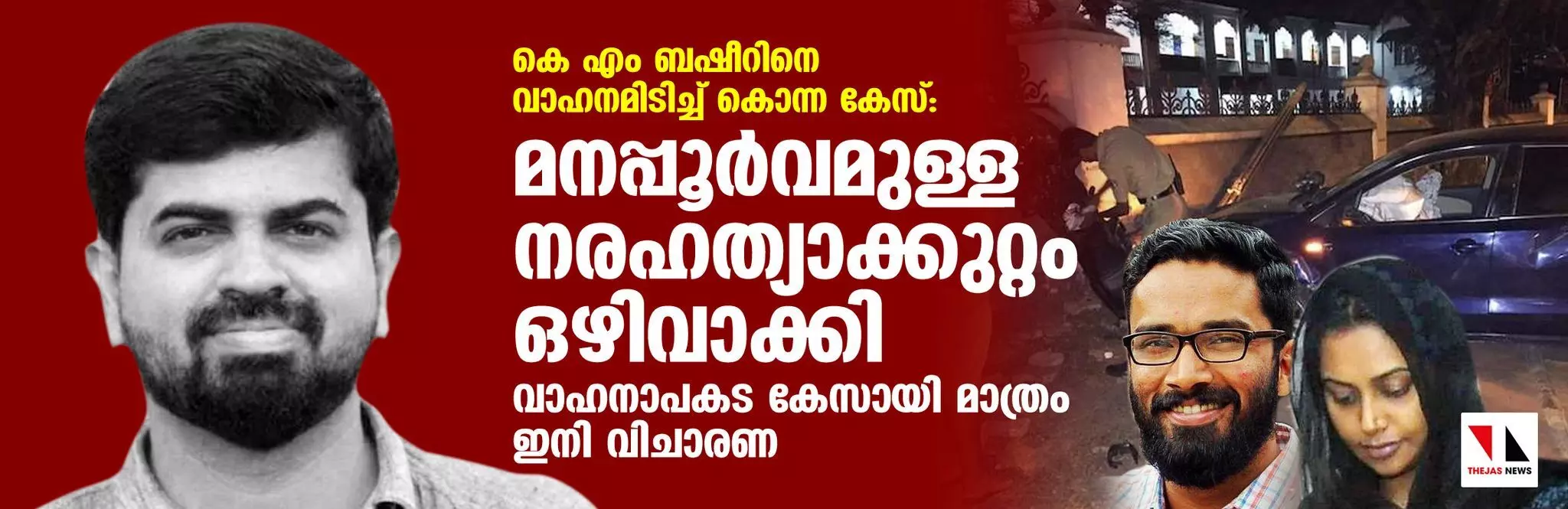 കെ എം ബഷീറിനെ വാഹനമിടിച്ച് കൊന്ന കേസ്: മനപ്പൂര്വമുള്ള നരഹത്യാക്കുറ്റം ഒഴിവാക്കി; വാഹനാപകട കേസായി മാത്രം ഇനി വിചാരണ