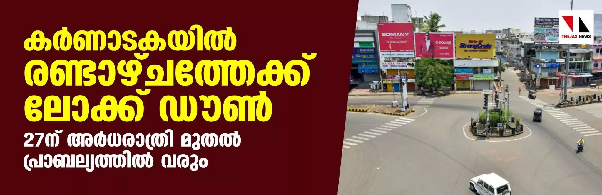 കര്ണാടകയില് രണ്ടാഴ്ചത്തേക്ക് ലോക്ക് ഡൗണ്; 27ന് അര്ധരാത്രി മുതല് പ്രാബല്യത്തില് വരും
