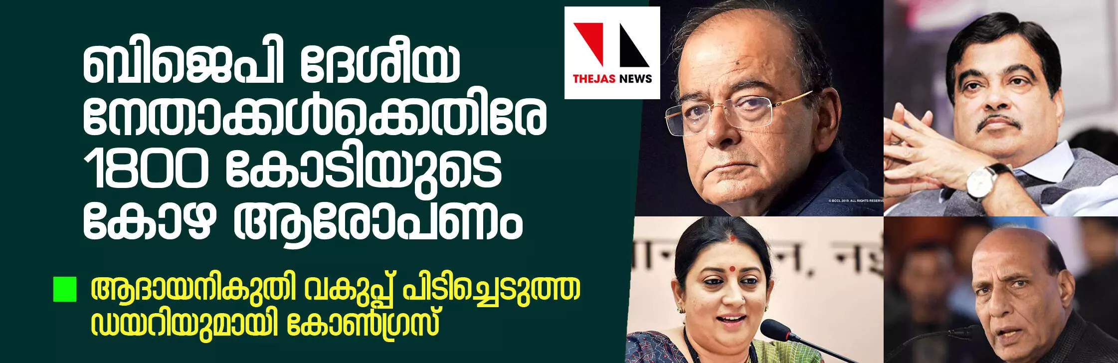 കോഴപ്പണത്തിന്റെ കണക്കുകള് പുറത്തുവന്ന സാഹചര്യത്തില് അന്വേഷണമാവശ്യപ്പെട്ട് കോണ്ഗ്രസ് രംഗത്തെത്തി. കണക്കുകള് ശരിയാണോയെന്ന് പ്രധാനമന്ത്രി നരേന്ദ്രമോദി മറുപടി പറയണമെന്ന് കോണ്ഗ്രസ് ആവശ്യപ്പെട്ടു. 2017 മുതല് ആദായ നികുതി വകുപ്പിന്റെ പക്കല് ഡയറിയുണ്ടായിട്ടും അന്വേഷണം തടഞ്ഞത് ആരെന്ന് പറയണം. ലോക്പാല് അന്വേഷണം വേണമെന്നും കോണ്ഗ്രസ് നേതാക്കള് ഡല്ഹിയില് വാര്ത്താസമ്മേളനത്തില് ആവശ്യപ്പെട്ടു.