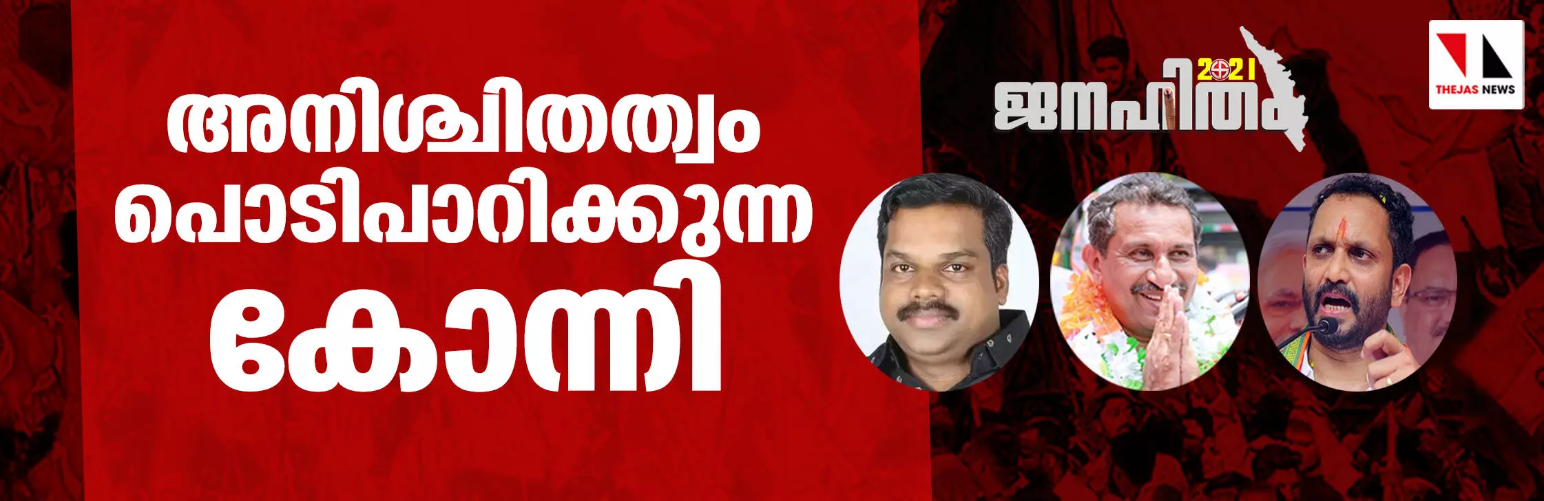 കോന്നി നിയോജക മണ്ഡലത്തില് ആറ് പേരാണ് മല്സരിക്കുന്നത്. എല്ഡിഎഫ് സ്ഥാനാര്ത്ഥി അഡ്വ. കെ.യു.ജനീഷ് കുമാറും യുഡിഎഫിനുവേണ്ടി കോണ്ഗ്രസ് സ്ഥാനാര്ത്ഥി റോബിന് പീറ്ററും ജനവിധി തേടുന്നു. ബിജെപി അധ്യക്ഷന് കെ സുരേന്ദ്രനാണ് ഇവിടെ നിന്ന് മല്സരിക്കുന്ന മറ്റൊരു പ്രധാന സ്ഥാനാര്ത്ഥി. അണ്ണാ ഡെമോക്രാറ്റിക് ഹ്യൂമന് റൈറ്റ്സ് മൂവ്മെന്റ് പാര്ട്ടി ഓഫ് ഇന്ത്യയുടെ രഘു പി, അംബേദ്കറൈറ്റ് പാര്ട്ടി ഓഫ് ഇന്ത്യയുടെ സുകു ബാലന്, സ്വതന്ത്രനായി മനോഹരനും മല്സരിക്കുന്നു. ബിജെപി നേതാവ് സുരേന്ദ്രന്റെയും അവസാന തിരഞ്ഞെടുപ്പില് അടൂര്പ്രകാശ് ജയിച്ച സീറ്റില് വിജയിച്ചു കയറിയ ജനീഷ് കുമാറുമാണ് ഈ മണ്ഡലത്തെ ശ്രദ്ധേയമാക്കുന്നത്.