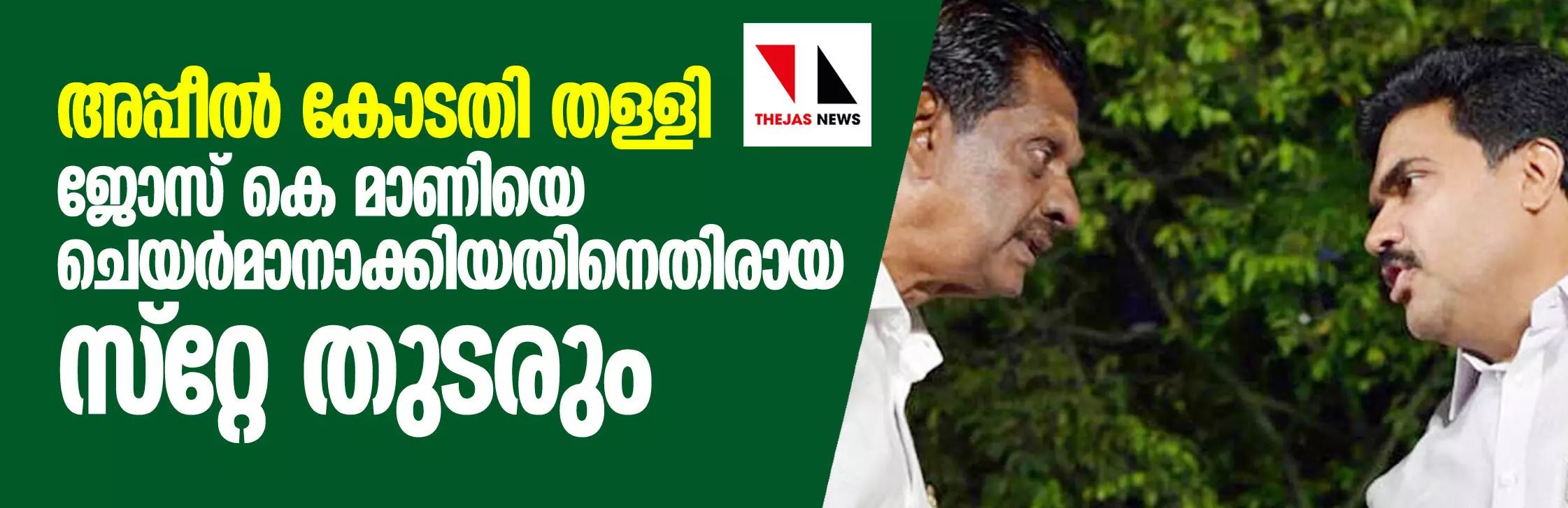 ജോസ് കെ മാണിക്ക് തിരിച്ചടി; ചെയര്മാനാക്കിയതിനെതിരായ സ്റ്റേ തുടരുമെന്ന് കോടതി