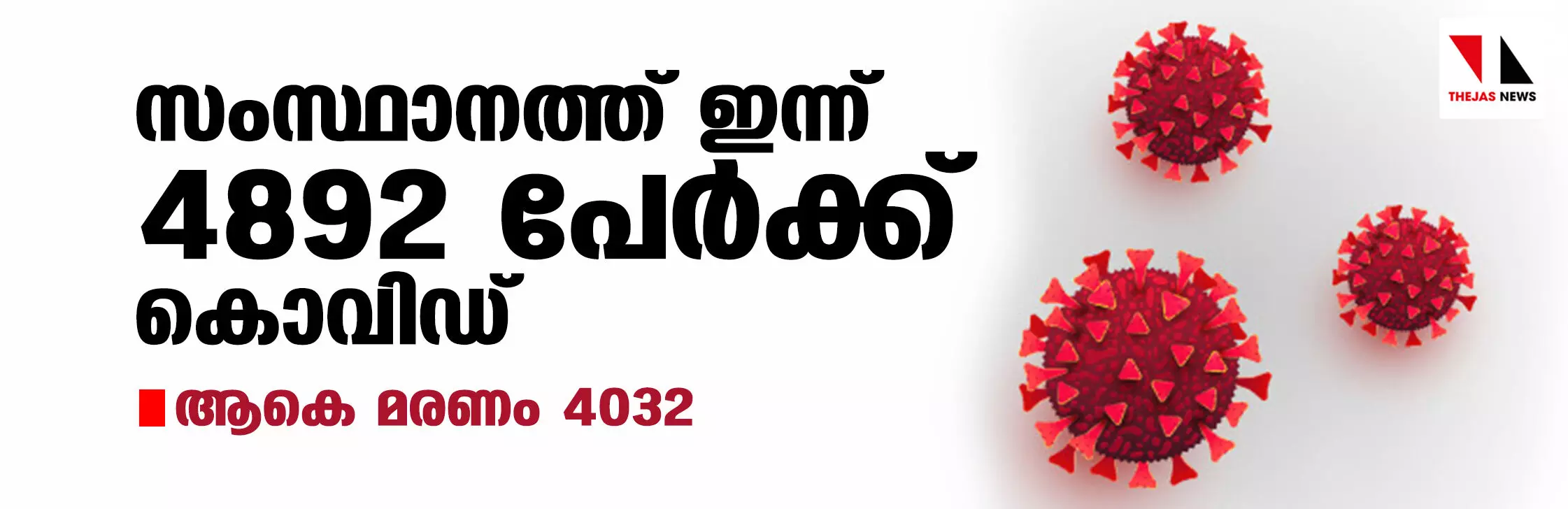 സംസ്ഥാനത്ത് ഇന്ന് 4892 പേര്ക്ക് കൊവിഡ് സ്ഥിരീകരിച്ചു; 4832 പേര് രോഗമുക്തി