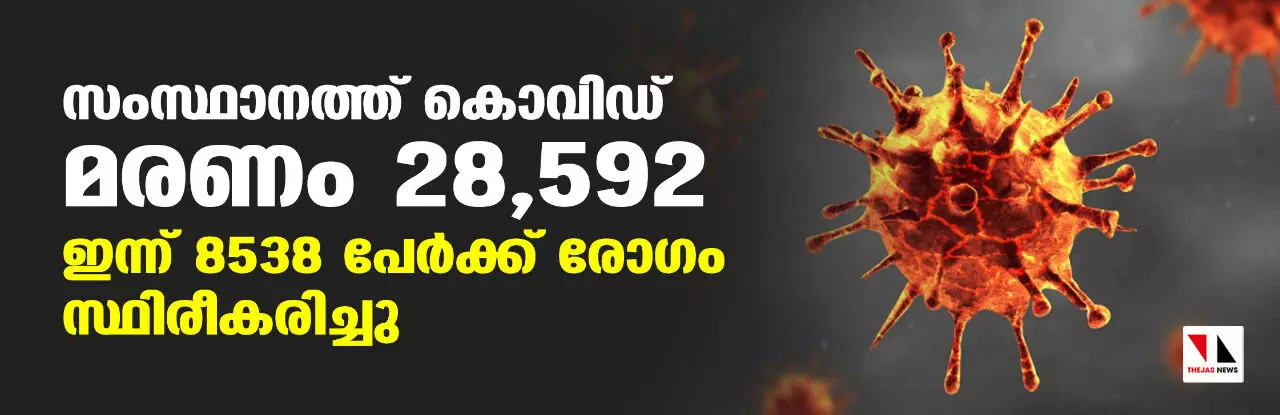 സംസ്ഥാനത്ത് കൊവിഡ് മരണം 28,592; ഇന്ന് 8538 പേര്ക്ക് രോഗം സ്ഥിരീകരിച്ചു