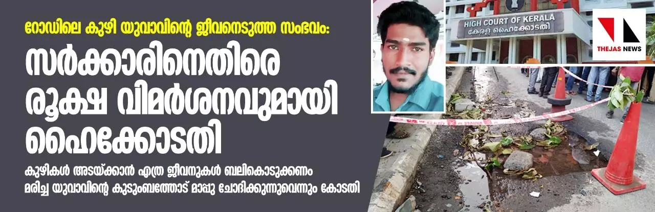 റോഡിലെ കുഴി യുവാവിന്റെ ജീവനെടുത്ത സംഭവം: സര്ക്കാരിനെതിരെ രൂക്ഷ വിമര്ശനുമായി ഹൈക്കോടതി