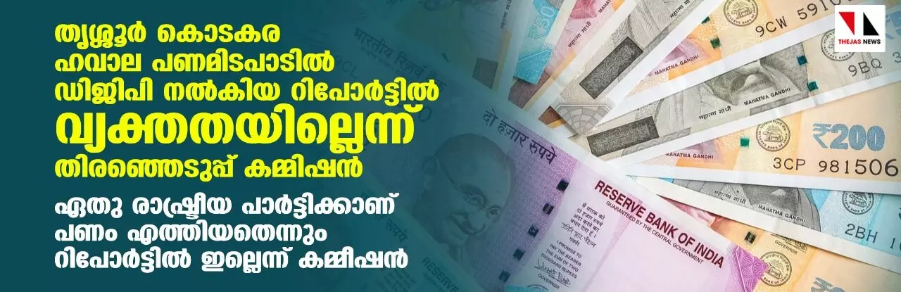 തൃശ്ശൂര് കൊടകര ഹവാല പണമിടപാടില് ഡിജിപി നല്കിയ റിപോര്ട്ടില് വ്യക്തതയില്ലെന്ന് തിരഞ്ഞെടുപ്പ് കമ്മിഷന്