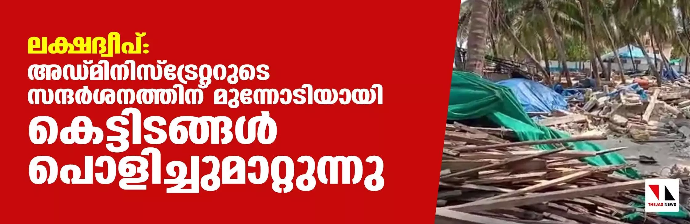 ലക്ഷദ്വീപ്: അഡ്മിനിസ്ട്രേറ്ററുടെ സന്ദര്ശനത്തിന് മുന്നോടിയായി കെട്ടിടങ്ങള് പൊളിച്ചുമാറ്റുന്നു