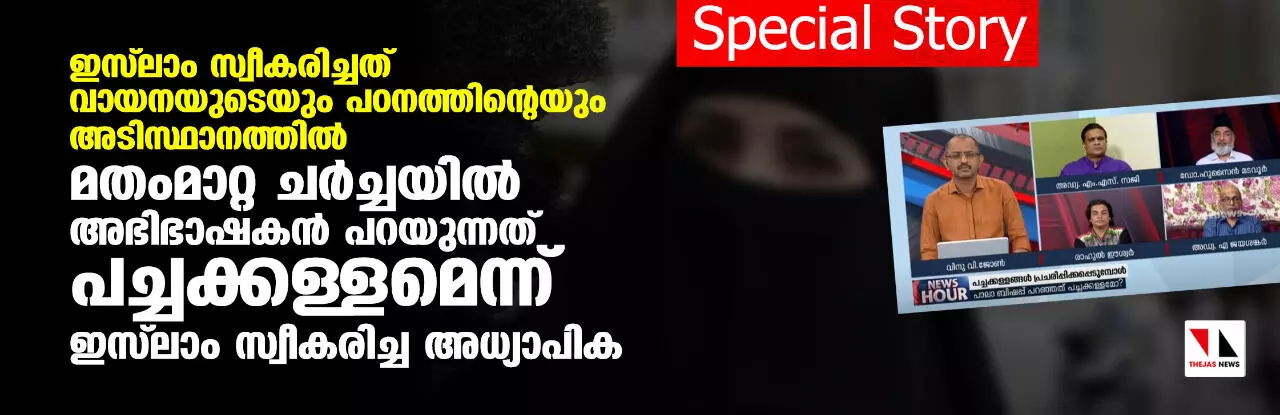 മതംമാറ്റ ചര്ച്ചയില് അഭിഭാഷകന് പറയുന്നത് പച്ചക്കള്ളമെന്ന് ഇസ് ലാം സ്വീകരിച്ച അധ്യാപിക
