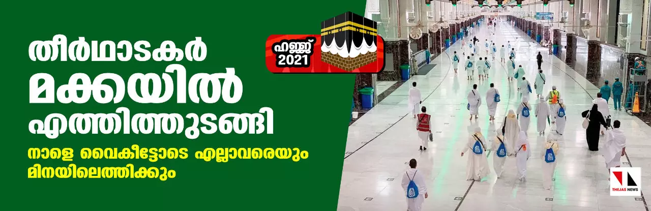 ഹജ്ജ് 2021: തീര്ഥാടകര് മക്കയിലെത്തിത്തുടങ്ങി; നാളെ വൈകീട്ടോടെ എല്ലാവരെയും മിനയിലെത്തിക്കും