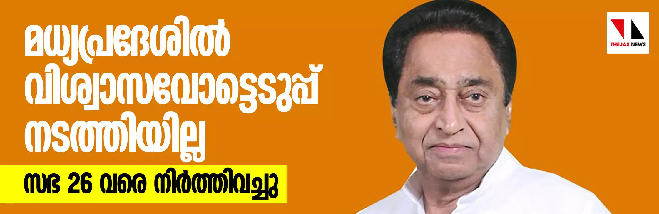 മധ്യപ്രദേശില് വിശ്വാസവോട്ടെടുപ്പു നടത്തിയില്ല; സഭ 26 വരെ നിര്ത്തിവച്ചു