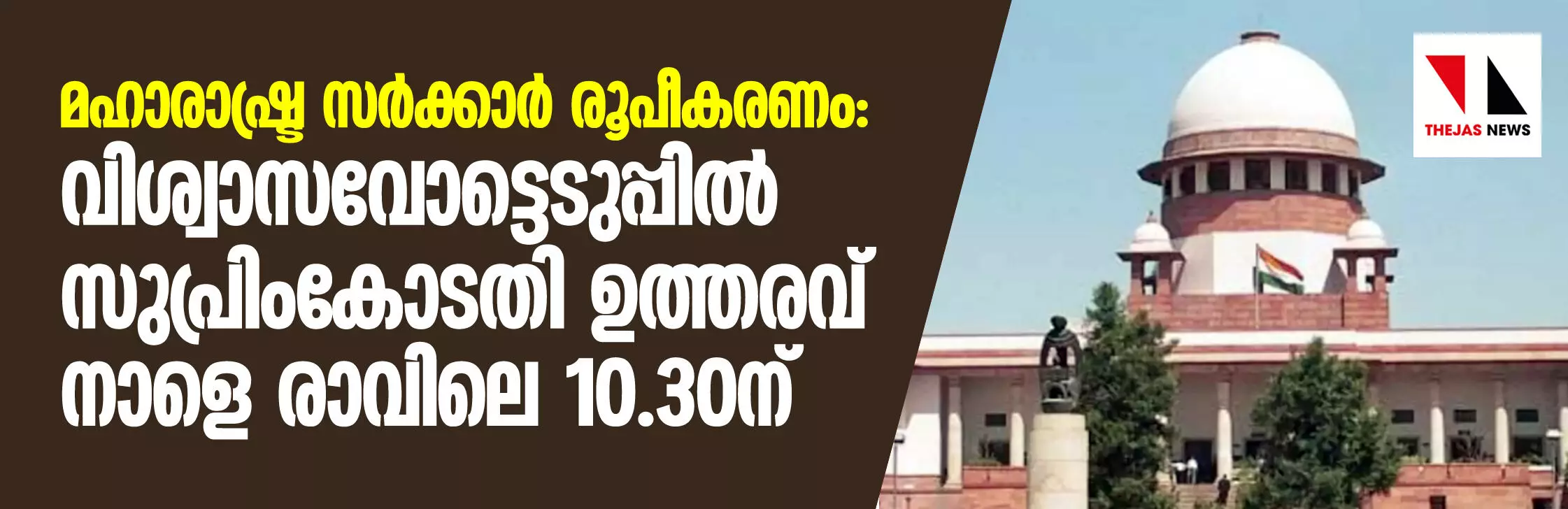 മഹാരാഷ്ട്ര സര്ക്കാര് രൂപീകരണം: വിശ്വാസവോട്ടെടുപ്പില് സുപ്രിംകോടതി ഉത്തരവ് നാളെ രാവിലെ 10.30ന്