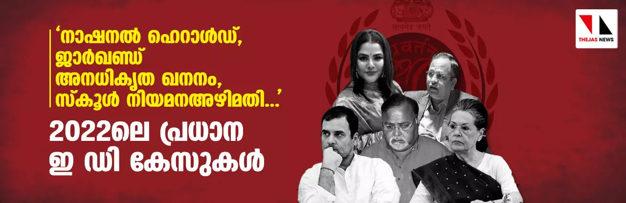 'നാഷനല് ഹെറാള്ഡ്, ജാര്ഖണ്ഡ് അനധികൃത ഖനനം, സ്കൂള് നിയമനഅഴിമതി...': 2022ലെ പ്രധാന ഇ ഡി കേസുകള് ഇവയാണ്