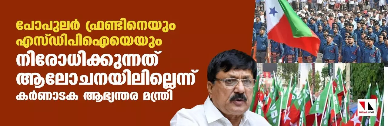 പോപുലര് ഫ്രണ്ടിനെയും എസ്ഡിപിഐയെയും നിരോധിക്കുന്നത് ആലോചനയിലില്ലെന്ന് കര്ണാടക ആഭ്യന്തര മന്ത്രി
