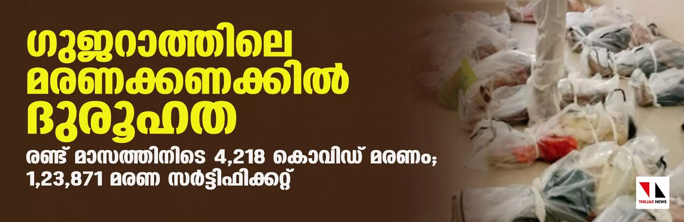 ഗുജറാത്തിലെ മരണക്കണക്കില് ദുരൂഹത; രണ്ട് മാസത്തിനിടെ 4,218 കൊവിഡ് മരണം, 1,23,871 മരണ സര്ട്ടിഫിക്കറ്റ്
