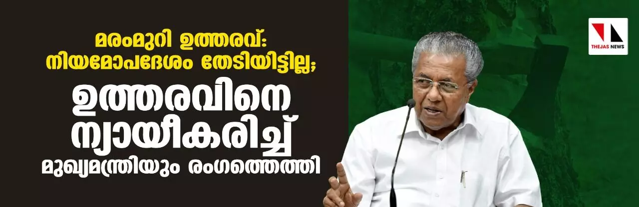 മരംമുറി ഉത്തരവ്: നിയമോപദേശം തേടിയിട്ടില്ല; ഉത്തരവിനെ ന്യായീകരിച്ച് മുഖ്യമന്ത്രിയും രംഗത്തെത്തി