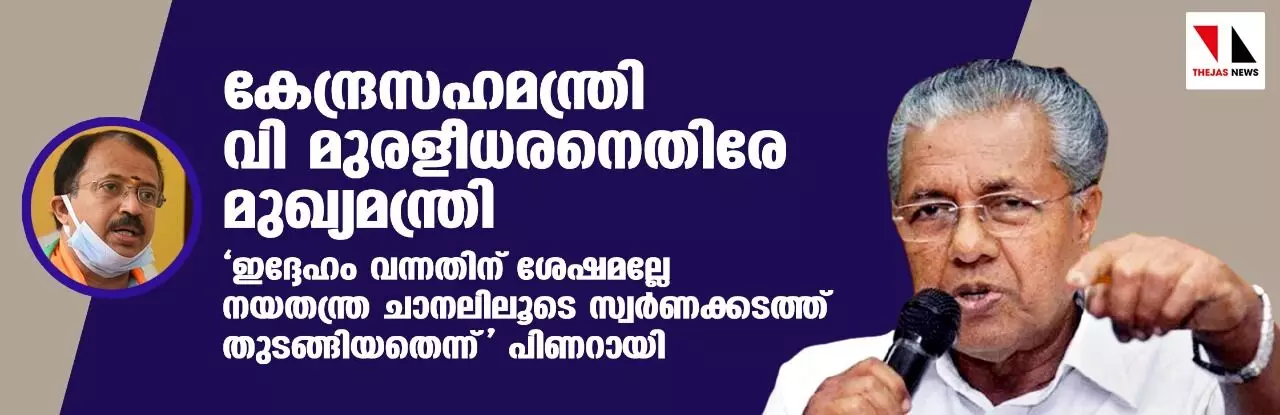 കേന്ദ്രസഹമന്ത്രി വി മുരളീധരനെതിരേ മുഖ്യമന്ത്രി; 'ഇദ്ദേഹം വന്നതിന് ശേഷമല്ലേ നയതന്ത്ര ചാനലിലൂടെ സ്വര്ണക്കടത്ത് തുടങ്ങിയതെന്ന്' പിണറായി