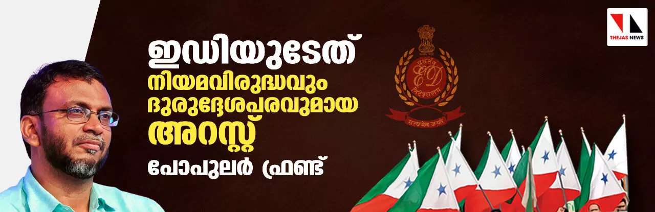 ഇഡിയുടേത് നിയമവിരുദ്ധവും ദുരുദ്ദേശപരവുമായ അറസ്റ്റ്: പോപുലര് ഫ്രണ്ട്