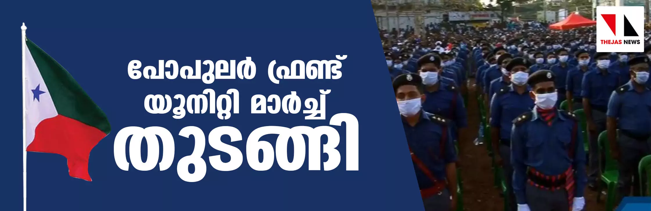 കോഴിക്കോട്: പോപുലര് ഫ്രണ്ട് ഓഫ് ഇന്ത്യ രൂപീകരണ ദിനാചണത്തിന്റെ ഭാഗമായി സംഘടിപ്പിക്കുന്ന യൂനിറ്റി മാര്ച്ച് തുടങ്ങി. കേരളത്തിലെ 18 കേന്ദ്രങ്ങളിലാണ് 4.30ന് യൂനിറ്റ് മാര്ച്ച് ആരംഭിച്ചത്.