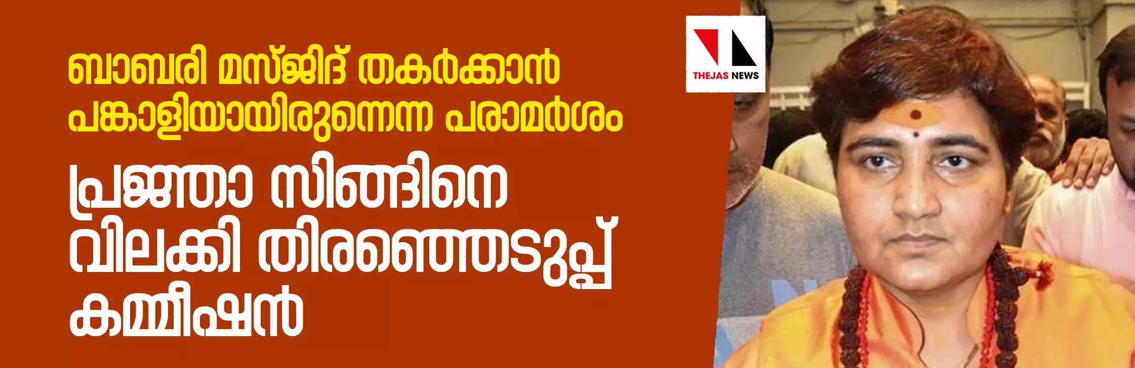 ബാബരി മസ്ജിദ് തകര്ക്കാന് പങ്കാളിയായിരുന്നെന്ന പരാമര്ശം; പ്രജ്ഞാ സിങ്ങിനെ വിലക്കി തിരഞ്ഞെടുപ്പ് കമ്മീഷന്