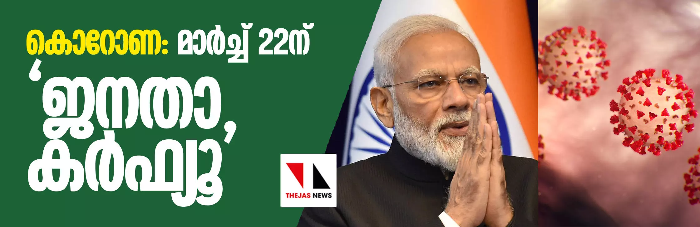 കൊറോണ: മാര്ച്ച് 22ന് 'ജനതാ കര്ഫ്യൂ'വിന് ആഹ്വാനം ചെയ്ത് പ്രധാനമന്ത്രി
