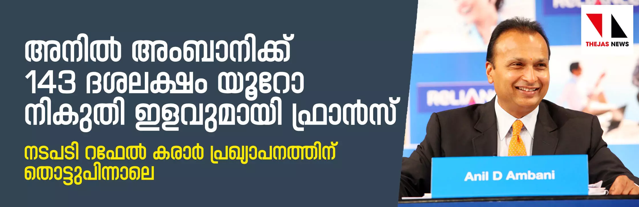 റഫേല് കരാറിന് പിന്നാലെ അനില് അംബാനിയ്ക്ക് ഫ്രാന്സിന്റെ 143 ദശലക്ഷം യൂറോ നികുതിയിളവ്