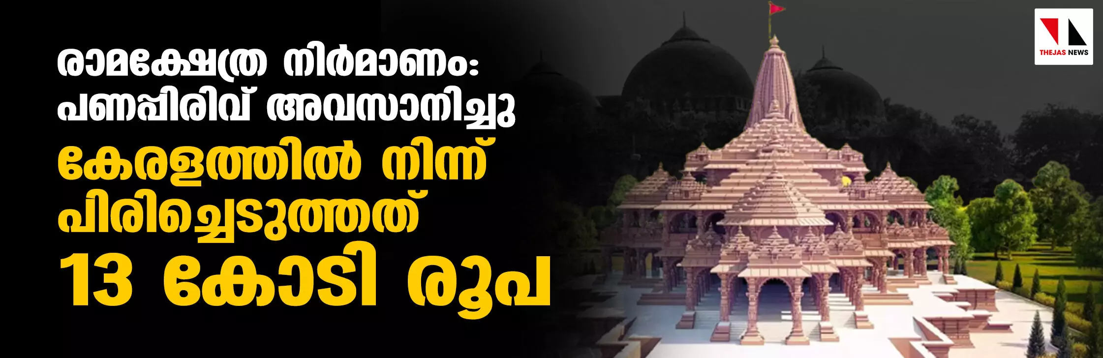 രാമക്ഷേത്ര നിര്മാണം: പണപ്പിരിവ് അവസാനിച്ചു; കേരളത്തില് നിന്ന് പിരിച്ചെടുത്തത് 13 കോടി രൂപ
