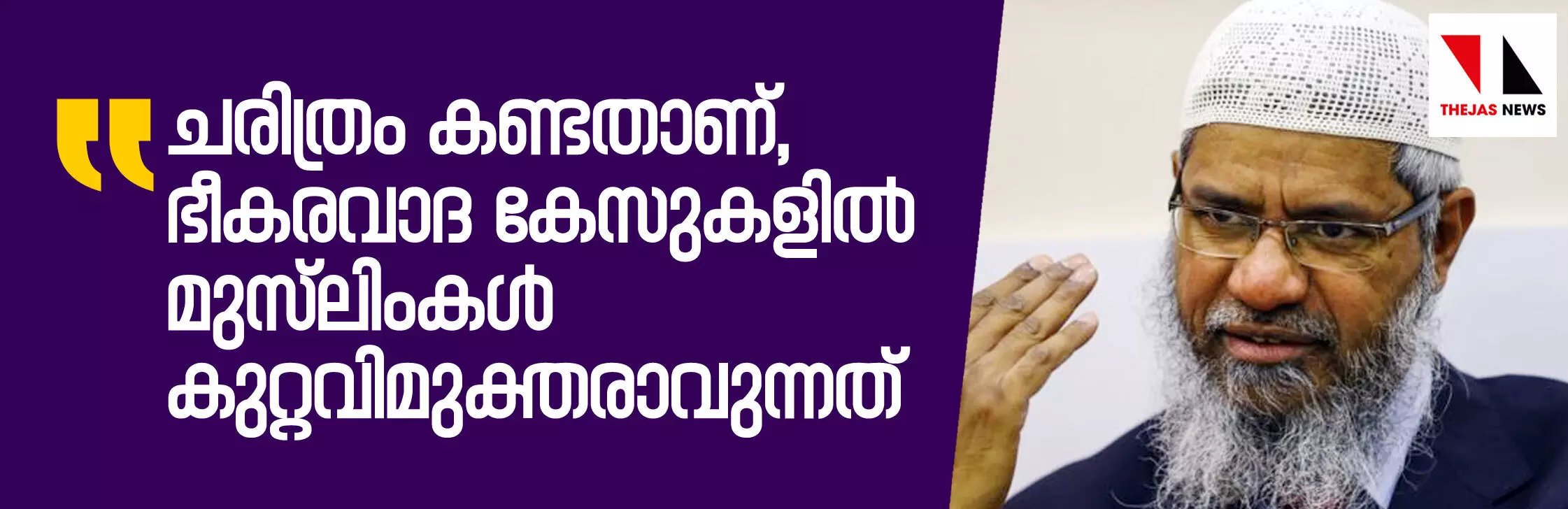 ധക്കയിലും ശ്രീലങ്കയിലും സ്ഫോടനങ്ങള് നടത്തിയവര്, ഇപ്പോള് കേരളത്തില് അറസ്റ്റുചെയ്യപ്പെട്ട യുവാക്കളോടും ചോദിച്ച് നോക്കുക, ഇവരാരും എന്റെ പേര് പറയുകയില്ല. നിഷ്കളങ്കരായ ജനങ്ങളെ കൊല്ലാന് ഞാന് ഒരിക്കലും പ്രചോദനമായിട്ടില്ല. എന്ഫോഴ്സ്മെന്റ് ഡയറക്ടറേറ്റിന്റെ പണമിടപാട് സംബന്ധിച്ച ആരോപണത്തോട് തനിക്ക് ഒരു ബാങ്ക് അക്കൗണ്ട് മാത്രമാണുള്ളതെന്ന് അദ്ദേഹം പ്രതികരിച്ചു. യഥാര്ഥത്തില് ഞാന് ബിസിനസ്സാണ് ചെയ്യുന്നത്, എനിക്ക് ഒരുപാട് കമ്പനികളുണ്ട്, ഒരു വ്യക്തിക്ക് സ്വന്തമായി ബിസിനസ നടത്താന് ഇന്ത്യന് നിയമത്തില് വിലക്കുകള് ഒന്നുമില്ലല്ലോ?. ഒരാള്ക്ക് 50 കമ്പനി ഉണ്ടെങ്കില് അതില് മുഴുവനിലും ക്രയവിക്രയം നടക്കണമെന്നില്ല.