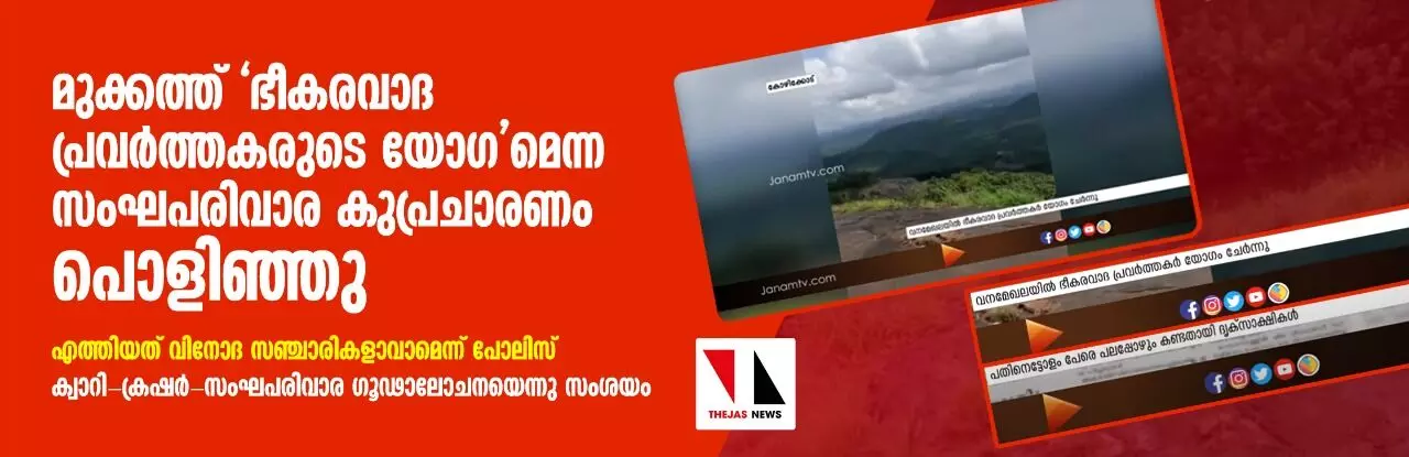പ്രാദേശിക വിനോദസഞ്ചാര മേഖലയായ വൈദ്യര്മലയില് പ്രൃതി മനോഹാരിത ആസ്വദിക്കാന് ഒഴിവ് സമയങ്ങളില് നിരവധി യുവാക്കളും മറ്റും ഇവിടെ ഒത്തുകൂടാറുണ്ട്. പലരും ഇരിപ്പിട സൗകര്യത്തിനു വേണ്ടി മുള കൊണ്ട് ടെന്റ് കെട്ടി അവിടെയിരുന്ന് ഭക്ഷണമുണ്ടാക്കി കഴിക്കുന്നതും നാട്ടുകാര് കാണാറുണ്ട്. ഇത്തരത്തില് ഏതെങ്കിലും യുവാക്കളോ മറ്റോ എത്തിയതിനെയാണ് സംഘപരിവാരം ജനം ടിവിയെ കൂട്ടുപിടിച്ച് ഭീകരവാദ പ്രവര്ത്തകരുടെ യോഗം എന്നു ചിത്രീകരിക്കാന് ശ്രമിച്ചത്. പ്രദേശവാസിയായ ആര്എസ്എസ് പ്രവര്ത്തകനാണു സംശയകരമായി ചിലര് എത്തിയിരുന്നുവെന്ന വിധത്തില് ചാനലിലോടു സംസാരിച്ചത്. സംഘപരിവാര ചാനലിന്റെ പതിവു ശൈലിയില് സമീപ പ്രദേശത്തെ ചിലരെ ഉന്നംവച്ചുള്ളതായിരുന്നു റിപോര്ട്ട്. യുവാക്കള് ടെന്റ് കെട്ടി ഭക്ഷണം കഴിച്ചതിനെയും മറ്റും കായിക പരിശീലനത്തിന്റെ സൂചനയെന്നു വരെ ചിത്രീകരിച്ചു. വാര്ത്തയ്ക്കു നിറംകൂട്ടാനായി, നേരത്തേ കോടതി വെറുതെവിട്ട കേസിലെ ഒരു യുവാവിന്റെ പേര് പോലും പരാമര്ശിച്ചായിരുന്നു പ്രചാരണം. വാര്ത്ത പുറത്തുവന്നതോടെ യാഥാര്ത്ഥ്യം അന്വേഷിച്ച നാട്ടുകാരെല്ലാം ചാനലിനെതിരേ രംഗത്തെത്തുകയായിരുന്നു. ഇല്ലാത്ത ഭീകരവാദ കഥകള് പ്രചരിപ്പിച്ച് രാഷ്ട്രീയ നേട്ടം കൊയ്യാനുള്ള സംഘപരിവാര ശ്രമമാണിതെന്നു മനസ്സിലാക്കിയ നാട്ടുകാര് പോലിസിനോടും ഇക്കാര്യം അറിയിച്ചിട്ടുണ്ട്.