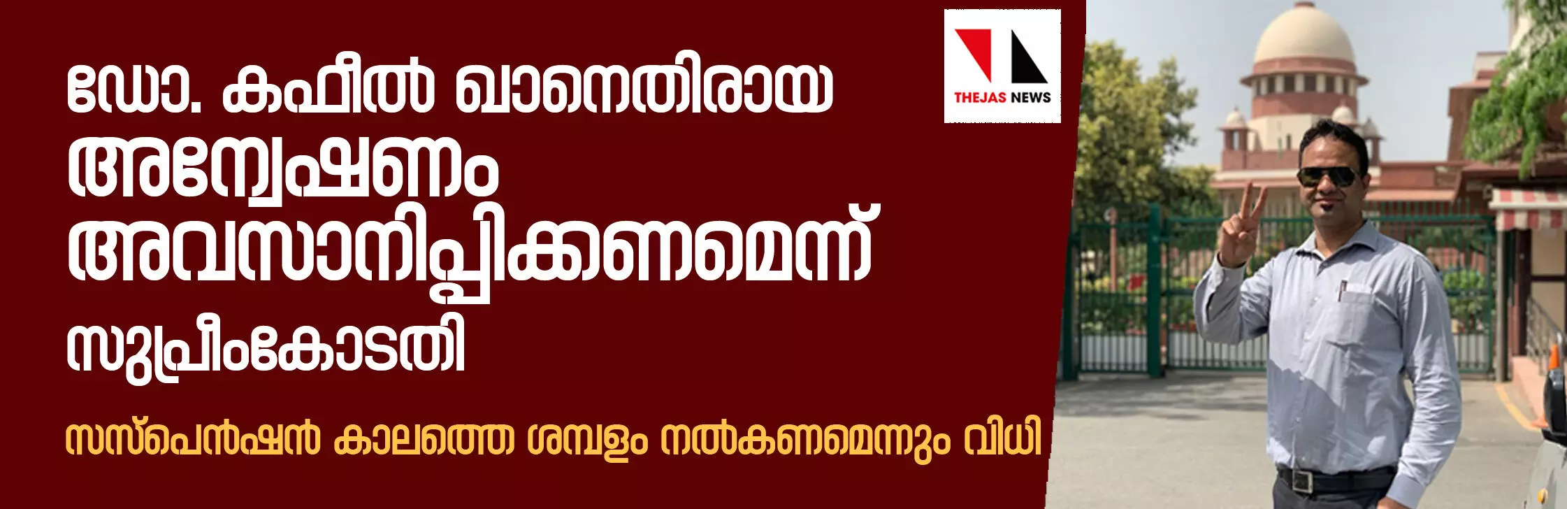 ഡോ. കഫീല് ഖാനെതിരായ അന്വേഷണം അവസാനിപ്പിക്കണമെന്ന് സുപ്രീംകോടതി -സസ്പെന്ഷന് കാലത്തെ ശമ്പളം നല്കണമെന്നും ഉത്തരവ്