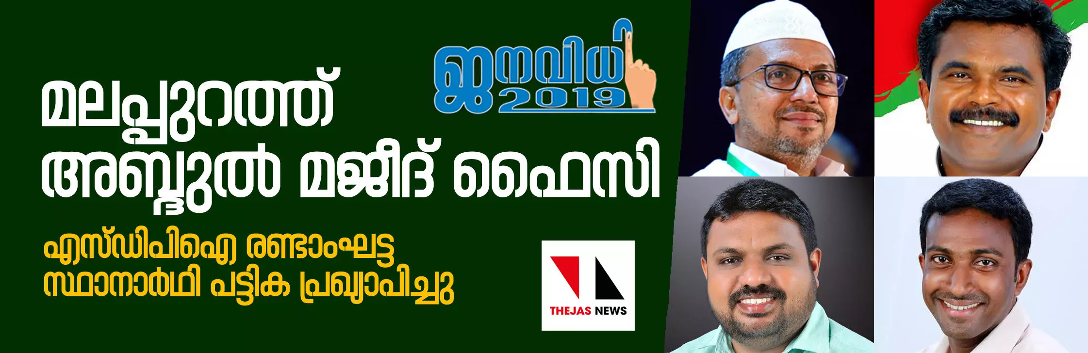 മലപ്പുറത്ത് അബ്ദുല് മജീദ് ഫൈസി; എസ്ഡിപിഐ രണ്ടാം ഘട്ട സ്ഥാനാര്ഥി പട്ടിക പ്രഖ്യാപിച്ചു