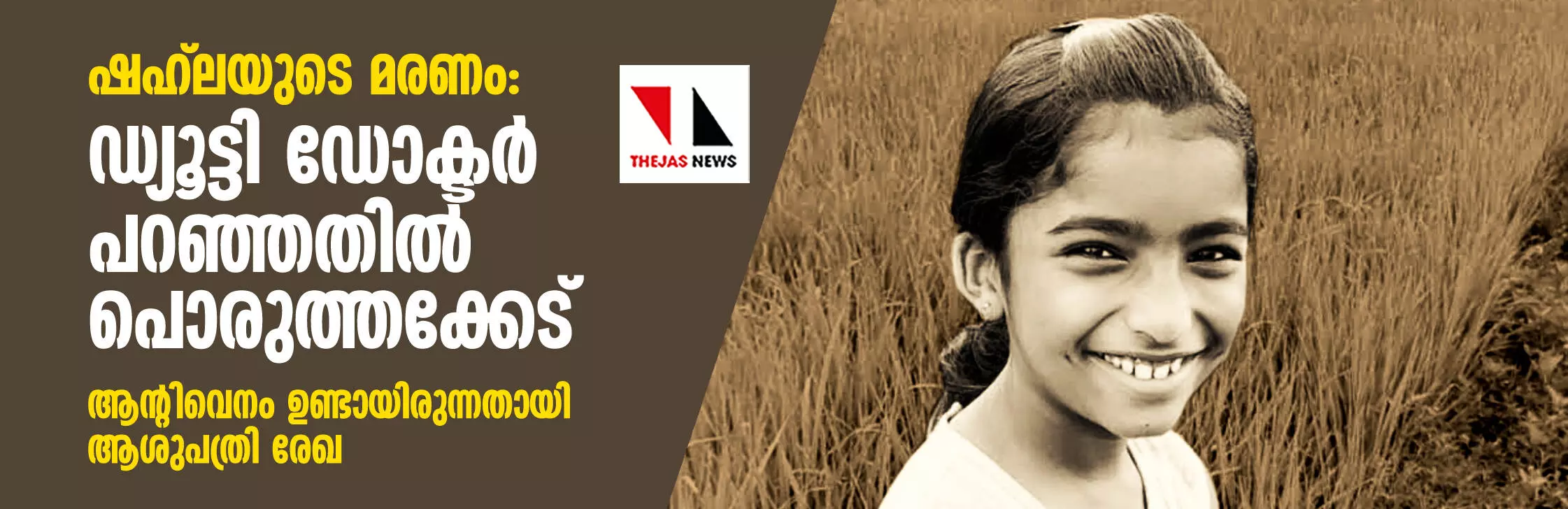 ഷഹ്ലയുടെ മരണം: ഡ്യൂട്ടി ഡോക്ടര് പറഞ്ഞതില് പൊരുത്തക്കേട്; ആന്റിവെനം ഉണ്ടായിരുന്നതായി ആശുപത്രി രേഖ