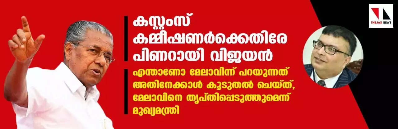 കസ്റ്റംസ് കമ്മീഷണര്ക്കെതിരേ പിണറായി; എന്താണോ മേലാവിന്ന് പറയുന്നത് അതിനേക്കാള് കൂടുതല് ചെയ്ത്, ചിലര് മേലാവിനെ തൃപ്തിപ്പെടുത്തുമെന്ന് മുഖ്യമന്ത്രി
