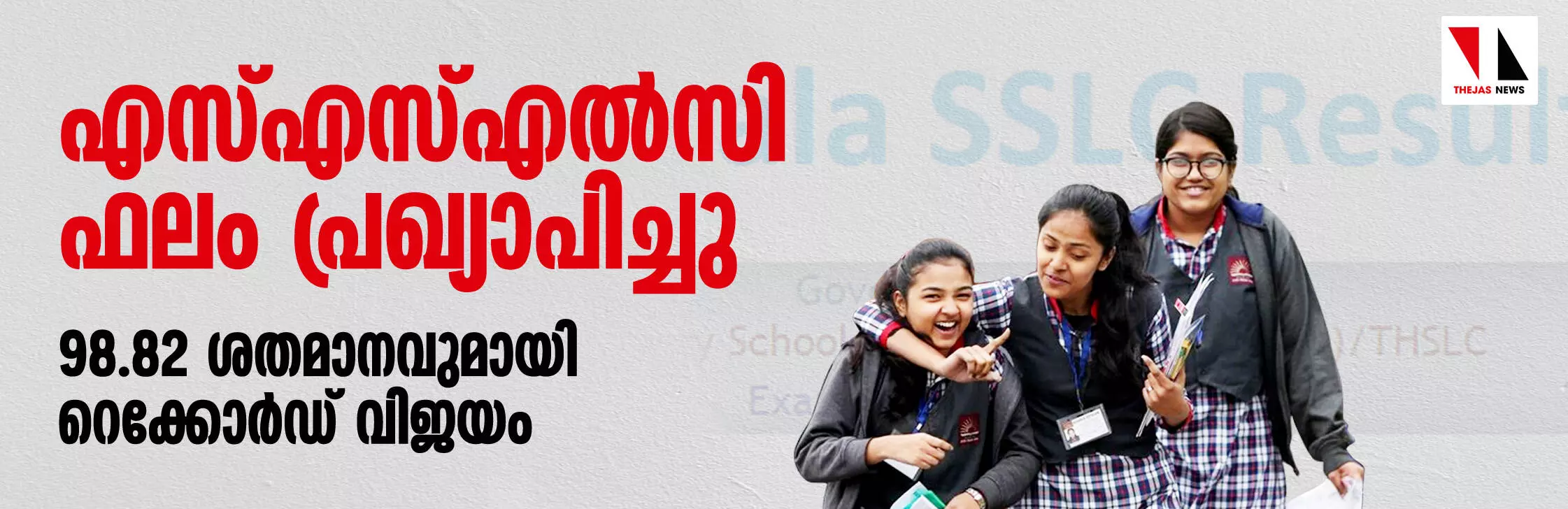 എസ്എസ്എല്സി ഫലം പ്രഖ്യാപിച്ചു; 98.82 ശതമാനവുമായി റെക്കോര്ഡ് വിജയം