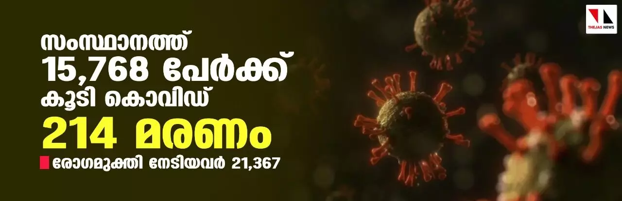 സംസ്ഥാനത്ത് ഇന്ന് 15,768 പേര്ക്ക് കൊവിഡ്; മരണം 214