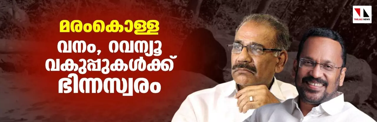 വയനാട്ടിലെ മുട്ടിലിലും മറ്റ് ജില്ലകളിലും നടന്ന മരം കൊള്ളയെക്കുറിച്ച് വനം, റവന്യൂ വകുപ്പുകൾക്ക് ഭിന്നസ്വരം