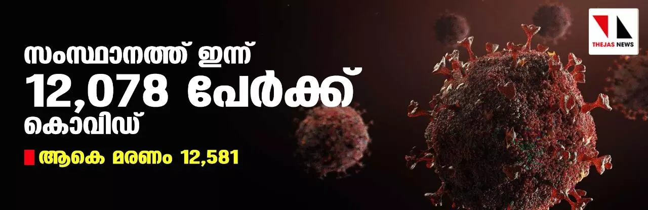 സംസ്ഥാനത്ത് ഇന്ന് 12,078 പേര്ക്ക് കൊവിഡ്; ടെസ്റ്റ് പോസിറ്റിവിറ്റി നിരക്ക് 10.37; മരണം 136