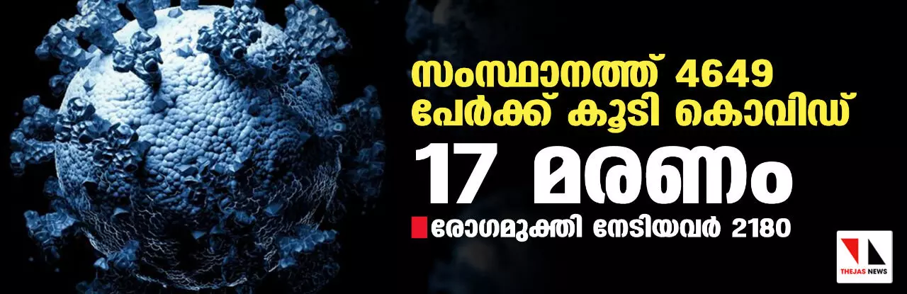 സംസ്ഥാനത്ത് ഇന്ന് 4649 പേര്ക്ക് കൊവിഡ്; മരണം 17; ആകെ മരണം 49116