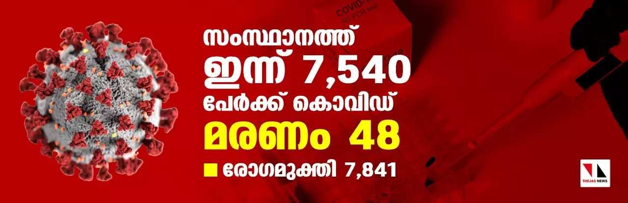 സംസ്ഥാനത്ത് ഇന്ന് 7540 പേര്ക്ക് കൊവിഡ്; മരണം 48
