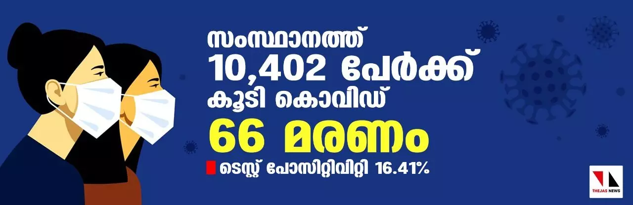 സംസ്ഥാനത്ത് ഇന്ന് 10,402 പേര്ക്ക് കൊവിഡ്; ടെസ്റ്റ് പോസിറ്റിവിറ്റി നിരക്ക് 16.41; മരണം 66