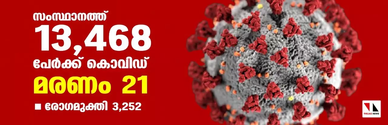 സംസ്ഥാനത്ത് ഇന്ന് 13,468 പേര്ക്ക് കൊവിഡ്; മരണം 21; ആകെ മരണം 50,369