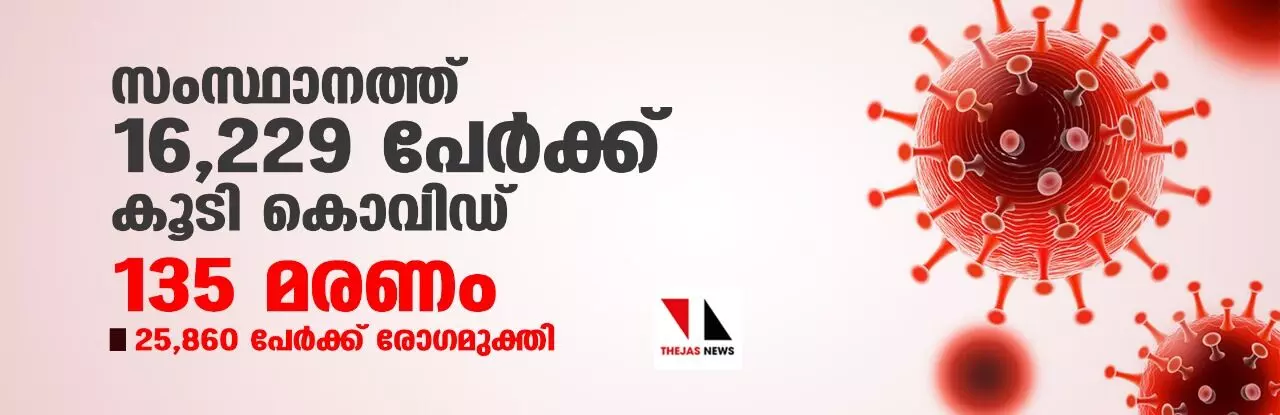 സംസ്ഥാനത്ത് ഇന്ന് 16,229 പേര്ക്ക് കൊവിഡ്; മരണം 135
